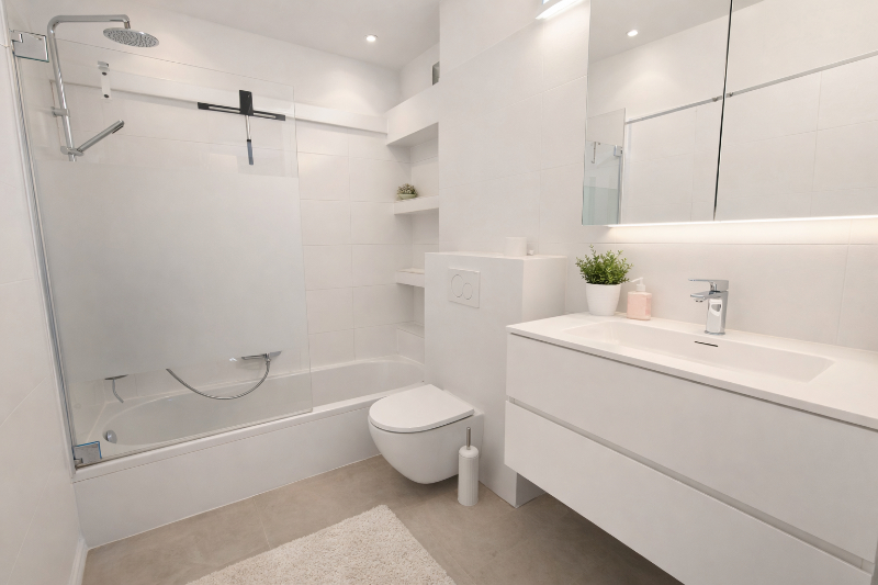 1 badkamers en een douche in de vierde slaapkamer en een apart toilet voor extra comfort.